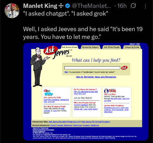 That’s .net though, the original is https://www.askjeeves.com/ which still exists and is garbage.