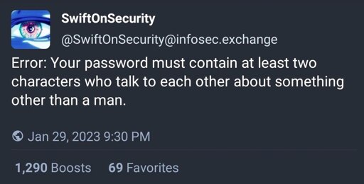arrow-up1519arrow-down1imageBechdel password requirementseviltoast.orgorhtej2@eviltoast.org to Microblog Memes@lemmy.worldEnglish · 3 months agomessage-square13linkfedilinkfile-text