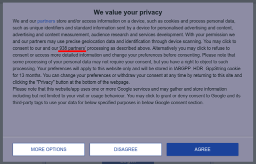 Unfortunately this is just the state of the web in the modern day. Virtually every site exists to serve you ads while simultaneously collecting your data and selling it to their “partners” in exchange for their content.