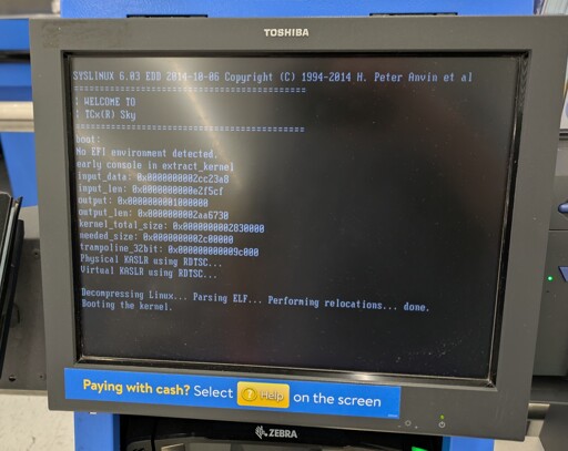 cm0002@lemmings.world to Linux@programming.dev · 1 month agothe self checkout machines at Walmart need a reboot. syslinux 6.03lemmy.mlimagemessage-square6linkfedilinkarrow-up190arrow-down12file-text