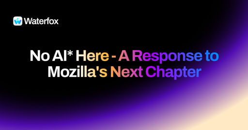 arrow-up1108arrow-down1external-linkNo AI* Here - A Response to Mozilla's Next Chapter - Waterfox Blogwww.waterfox.combrianpeiris@lemmy.ca to Firefox@lemmy.mlEnglish · 1 month agomessage-square12linkfedilinkcross-posted to: privacy@lemmy.mltechnology@lemmy.world