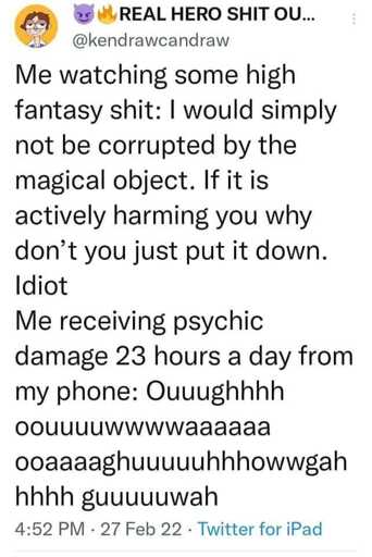 I’m old school, where NSFW was either tits or gore, but I’m trying to be a bit more sensitive about it, and also trying to not lob a mental flashbang on someone’s desk while they eat their depression sandwich at work